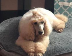 He has great structure, comes from wonderful bloodlines and is 100% genetically clear. He carries a wide variety of color and produces puppies with wonderful temperaments. Typically light poodles have lots of tear stains and he has a beautiful clean face.