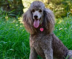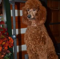 Lucia was born to us and is a beautiful red miniature poodle. She has kept her beautiful color so far and we excited to see her pups. Lucia is very intelligent and has a calm temperament. Both of her parents are very athletic and she has inherited that fit and athletic body build. Weighs about 14 lbs.